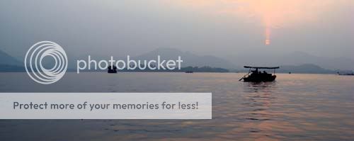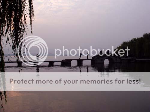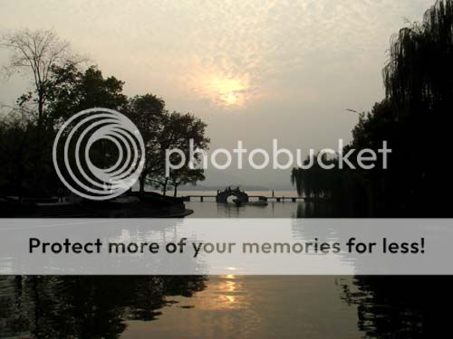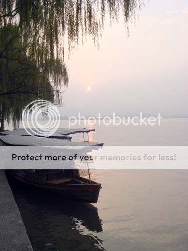 這天湖面有霧,不過西湖本來就是濛濛的來看更美──看了這樣的景色,你就會明白為啥中國的山水畫會是那種樣子的──那些濃淡不同,層層疊疊的景物,根本一點也不抽象──來西湖看一看,你就知道實物根本就是這樣子。外國的湖就算有霧,也不是同一種色彩。只有中國的湖,才是水墨畫的那種色彩。