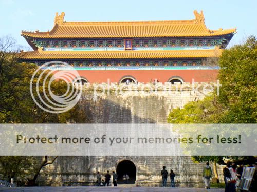 明孝陵要付門票,所以小貓三四隻,非常清靜,舒服多了。多得傻瓜機那怪異的白平衡,我弄了半天才很勉強的回復了明黃琉璃瓦的色彩...